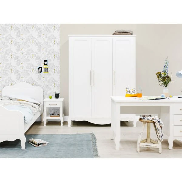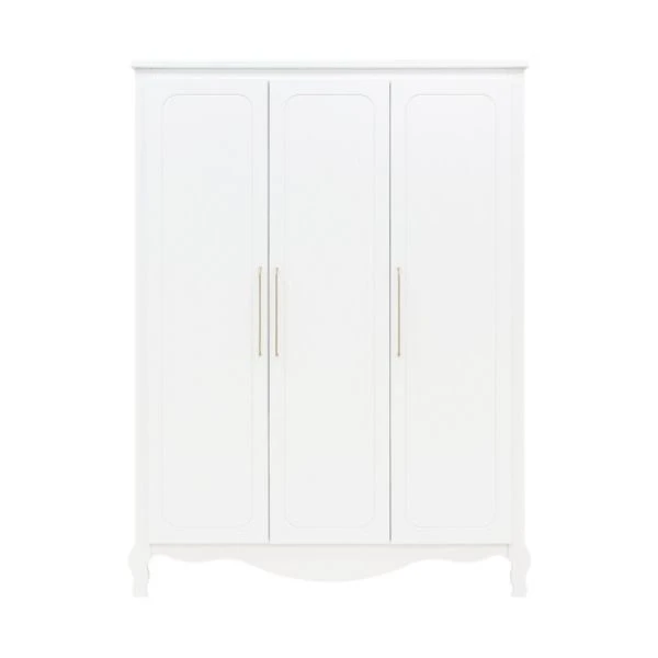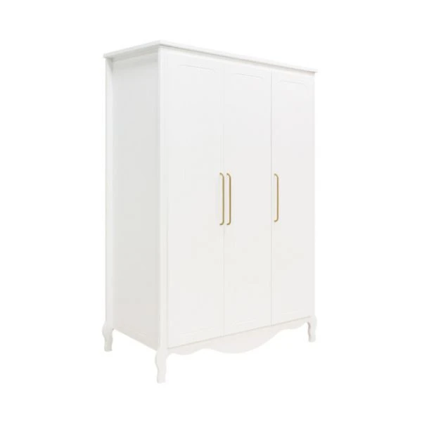 De Bopita Elena Kledingkast 3-Deurs Wit is gemaakt van hoogwaardig MDF materiaal en voorzien van een stijlvol design. De deuren en de lade van de kledingkast zijn voorzien van ranke, matte en goudkleurige handgrepen. De kast beschikt over twee vaste legplanken, één hangroede en vijf in hoogte verstelbare legplanken. Voldoende opbergruimte dus! De kast is perfect te combineren met andere producten van de Elena serie van Bopita.