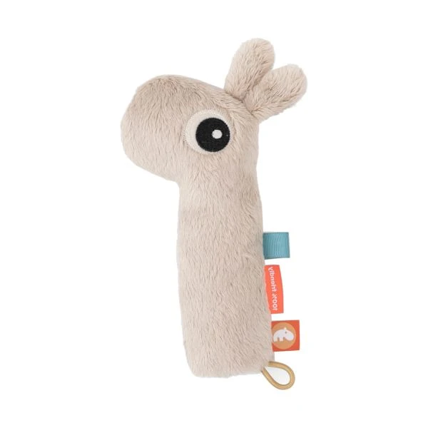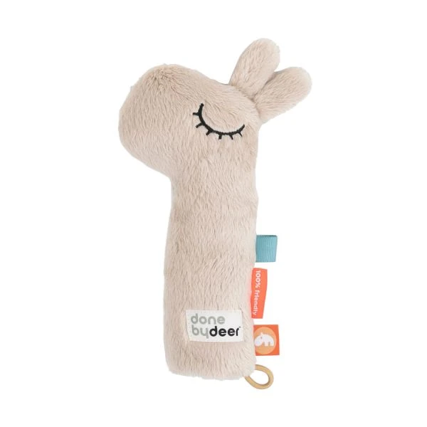 Met de Done by Deer Lalee Rammelaar Sand hoeft je kindje zich nooit meer te vervelen. De kindervriend voelt zacht aan en is altijd vrolijk! De rammelaar is uitermate geschikt voor kleine handjes en kan eenvoudig vastgehouden worden. Daarnaast rammelt de rammelaar gezellig en piept hij vrolijk zodra je kindje erop duwt. De Done by Deer Raffi Rammelaar Grey is gemaakt van hoogwaardig materiaal en erg leuk om als kraamcadeau weg te geven.