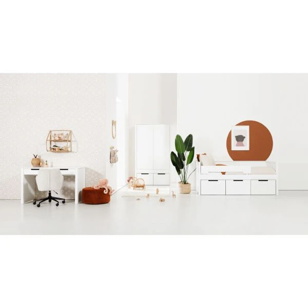 De Europe Baby Ralph Kinderkamer Wit | Bed 90 x 200 cm + Kast 2-Deurs heeft een strakke vormgeving waardoor de kinderkamer in elk interieur tot zijn recht komt. De meubels van de Ralph kinderkamer zijn gemaakt van hoogwaardig spaanplaat in combinatie met MDF materiaal. Dankzij de bijhorende opberglades van de meubels beschikt de Europe Baby Ralph Kinderkamer Wit over voldoende opbergruimte. Daarnaast is de Europe Baby Ralph Kinderkamer Wit geschikt voor zowel jongens als meisjes. Een stijlvolle en kwalitatieve kamer voor kind en tiener!