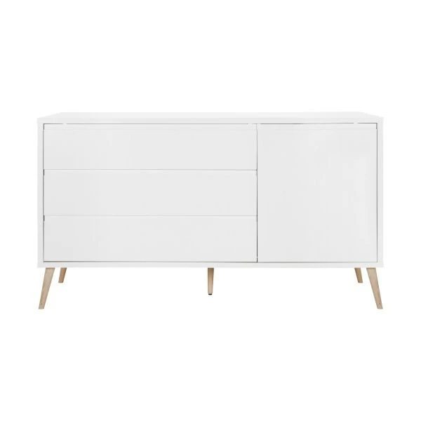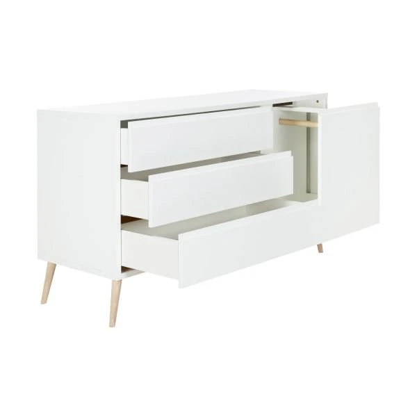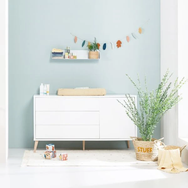 Deze uitvoering van de Europe Baby Sterre Commode XL Wit heeft 3 extra ruime lades en aan de rechterzijde één hoge lade met een hanggedeelte. De commode is gemaakt van hoogwaardig materiaal en is erg praktisch in gebruik door het soft close systeem waarmee de lades zijn uitgerust. Hierdoor kun je de lades heel gemakkelijk en zonder geluid sluiten. Verder is de commode voorzien van een stijlvol ontwerp en perfect te combineren met de andere meubels uit de Sterre serie.