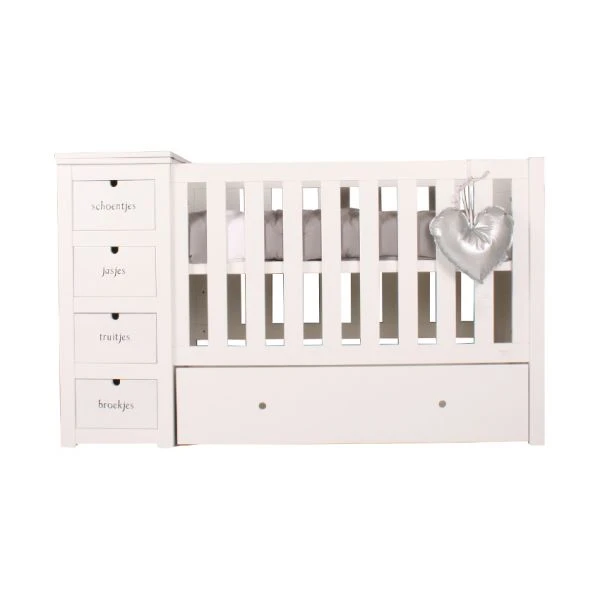Ledikant en commode in 1, handig voor de kleinere ruimte’s.