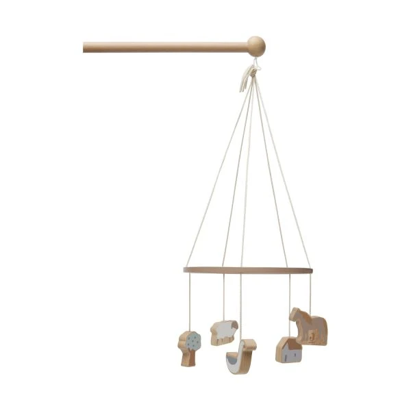 De Jollein Farm Mobiel is een leuke muziekmobiel met schattige figuurtjes in het boerderij thema. Door de figuurtjes ontwikkelt je kindje motorische vaardigheden zoals grijpen en kijken. Je kunt de baby mobiel met de apart verkrijgbare houten mobiel houder eenvoudig bevestigen aan vrijwel iedere box, wieg of ledikant.