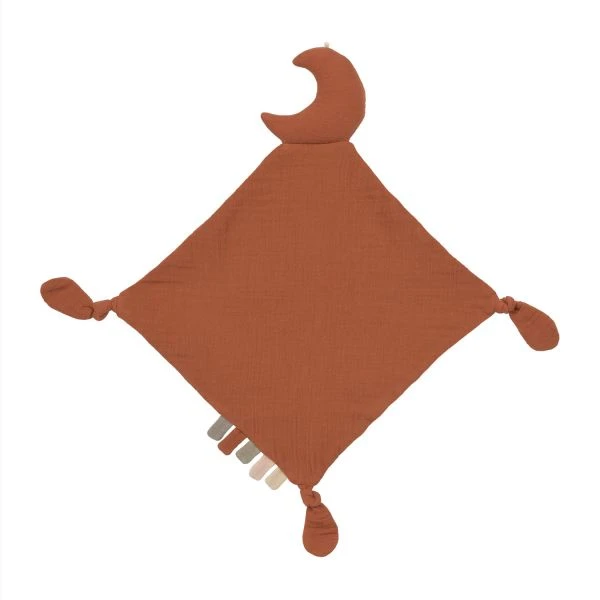Met het Laessig Moon Knuffeldoekje Rust kan je kindje lekker knuffelen en spelen. Het zachte knuffelvriendje kan overal mee naar toe en is gemakkelijk vast te houden met kleine kinderhandjes. Daarnaast beschikt het doekje over gekleurde labeltjes en zijn de hoeken geknoopt wat je kindje erg interessant zal vinden. Verder is het knuffeldoekje gemaakt van hoogwaardig materiaal dat zacht en comfortabel aanvoelt.