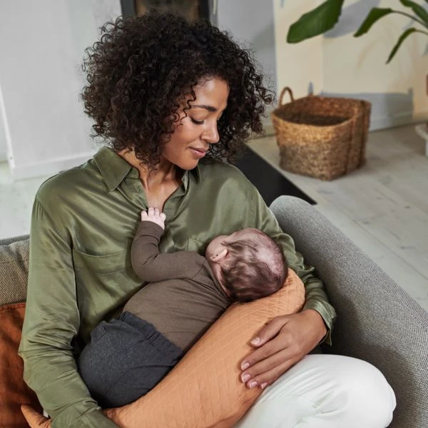 De zachte en comfortabele Moonboon Moon Voedingskussen – Nature biedt jou en je kindje perfecte ondersteuning tijdens het voeden. Het maanvormige kussen heeft een ergonomische vorm en kan daarom naast het voeden bijvoorbeeld in de kinderwagen of box worden gebruikt. Op die manier kan je kindje met de tijd makkelijker zelfstandig overeind zitten. Ook tijdens de zwangerschap kan het voedingskussen van pas komen voor extra steun in de rug tijdens het zitten of om de druk op de buik en benen te verminderen tijdens het slapen. Het kussen is gevuld met fijne biologische boekweitdoppen die ervoor zorgen dat je het kussen flexibel kunt vormen. Bovendien is deze kussenvulling van nature hypoallergeen en temperatuurregulerend. Verder is de hoes afneembaar zodat hij gewassen kan worden in de wasmachine op 40°C, maar is niet geschikt voor in de droger.