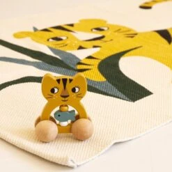 Met de Roommate Tiger Houten Rammelaar kan je kindje lekker rammelen en spelen. De rammelaar is gemakkelijk vast te pakken met kleine kinderhandjes en heeft de vorm van een schattig dier. Wanneer je de rammelaar heen en weer beweegt zal het vrolijk rammelen, dit zal je kindje erg interessant vinden. De houten kraaltjes in de buik van het dier kunnen ronddraaien en zorgen voor het rammel-geluid. Ook is de rammelaar voorzien van wieltjes. Verder is de vrolijke rammelaar gemaakt van hoogwaardig materiaal.