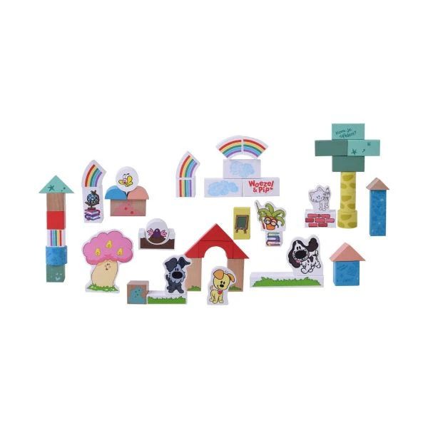 De Rubotoys Woezel En Pip Houtenblokken Set ontwikkelt je kindje de hand- oog coördinatie op een speelse manier. De set beschikt over 50 stukken in verschillende kleuren en vormen waar je kindje mee kan bouwen, stapelen en spelen. Door er mee te spelen komt de fantasie van je kindje tot leven en maakt het de mooiste bouwwerken. Verder is het speelgoed gemaakt van hoogwaardig materiaal en gemakkelijk vast te pakken met kleine handjes.