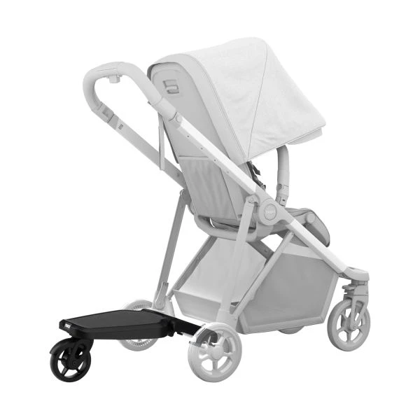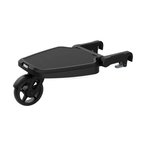 Het Thule Meerijdplankje is een handige accessoire voor de Thule Spring, Thule Sleek en Thule Shine kinderwagen. Op deze manier kan je twee kinderen tegelijk meenemen (één in de wagen en één op het board). Het meerijdplankje laat zich eenvoudig monteren en makkelijk opbergen als je hem niet gebruikt. Zo kan je urenlang wandelen zonder dat je kindje last krijgt van zere voetjes. Verder is het plankje gemaakt van hoogwaardig materiaal en voelt stevig aan. Let op, het meerijdplankje moet met adapters bevestigd worden aan de Thule Spring.