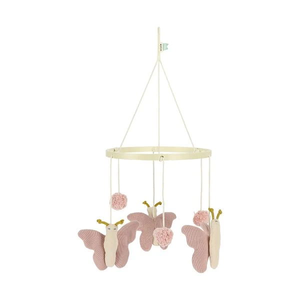 De Trixie Butterfly Mobiel is een stijlvolle toevoeging op de baby of kinderkamer. De schattige figuurtjes in de vorm van vlindertjes en pompons zullen je kindje uren kunnen vermaken. De mobiel en de figuurtjes hebben verschillende kleuren en contrasten wat bijdraagt aan de ontwikkeling van je kindje. De mobiel is eenvoudig te bevestigen aan de wieg, box of ledikant met behulp van een lusje en is gemaakt van hoogwaardig materiaal.